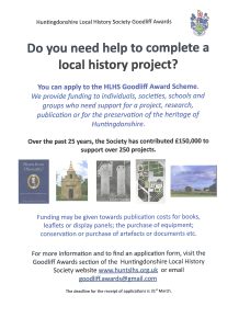 Do you need help to complete a local history project? The Society, through the Goodliff Award Scheme, can provide funding to individuals, societies, schools and groups who need support for a project, research, publication or for the preservation of the heritage of Huntingdonshire.